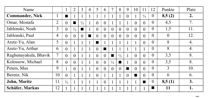 - 1. Platz: Markus Schäfer – unbesiegt, keine einzige Partie verloren!